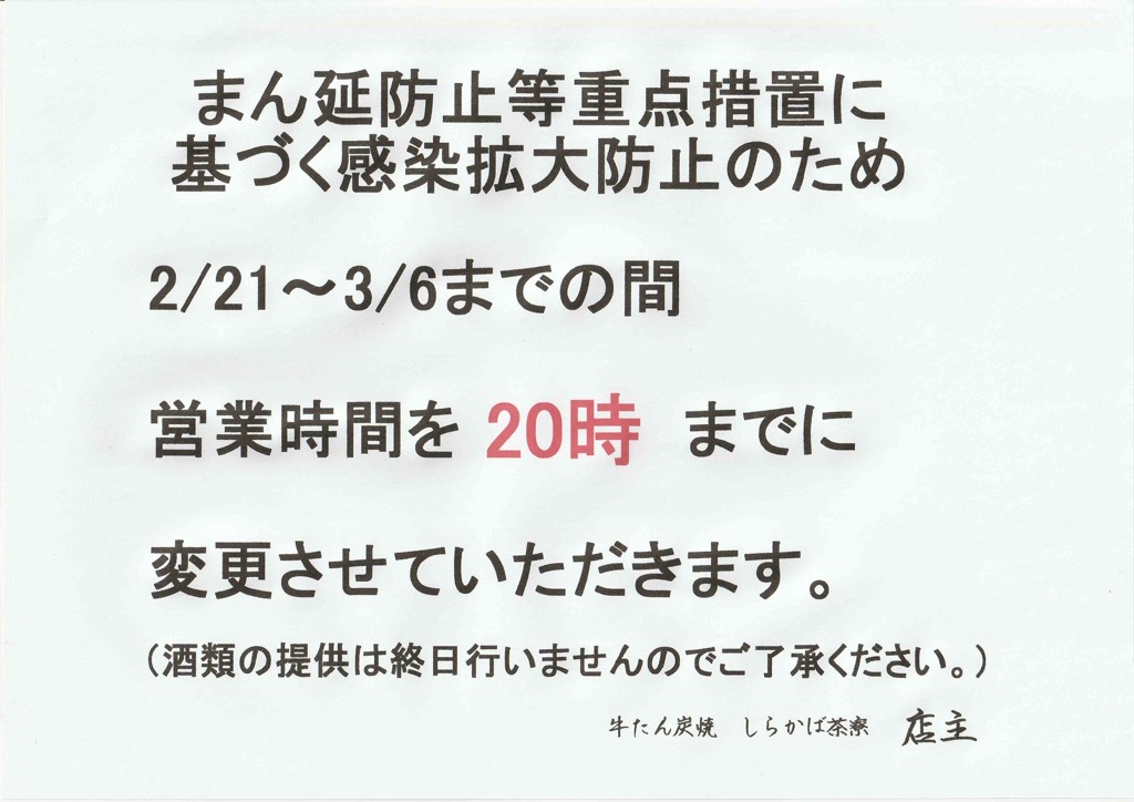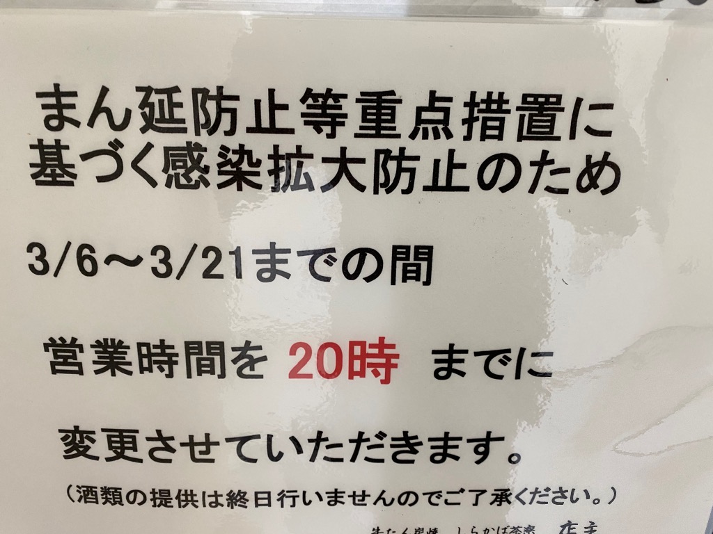 本日より3/21まで画像の通り営業時間を短縮しての営業となります。